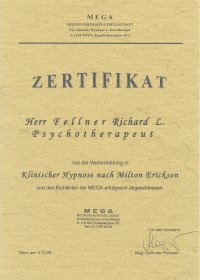 ![]() Certificate Hypnotherapy / Hypnosis Training (MEGA) | ![]() Hypnosystemic Counseling (MSc) (Milton Erickson Akademie & SFU) |